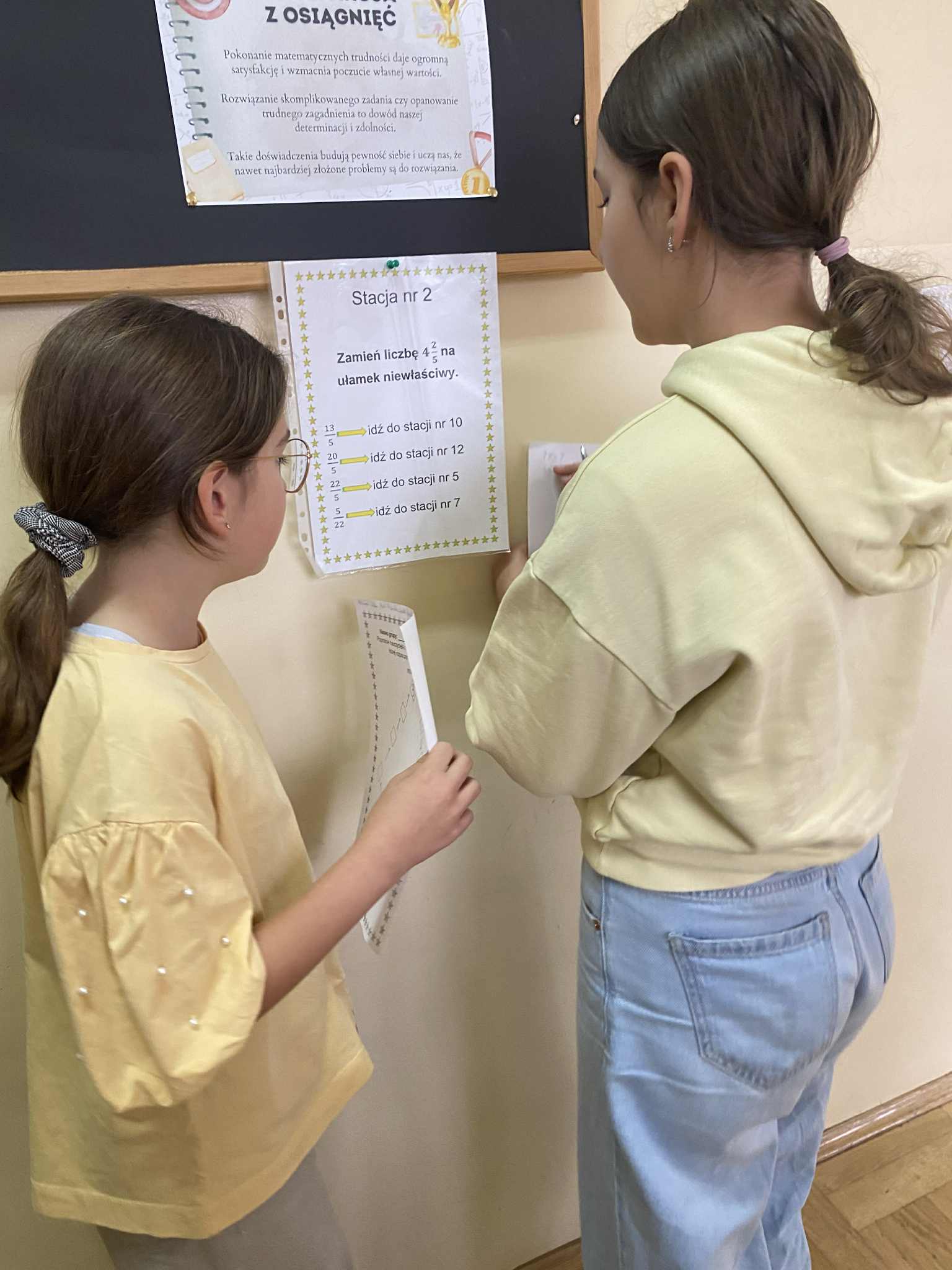 Na przygotowanych stacjach zadaniowych uczniowie mierzyli się z działaniami z tabliczki mnożenia, ułamkami i łamigłówkami, dostosowanymi do poziomu poszczególnych klas. Za poprawne rozwiązania zdobywali punkty, które mogły zostać wymienione na specjalne kupony — np. koło ratunkowe na sprawdzianie lub dzień bez pytania.